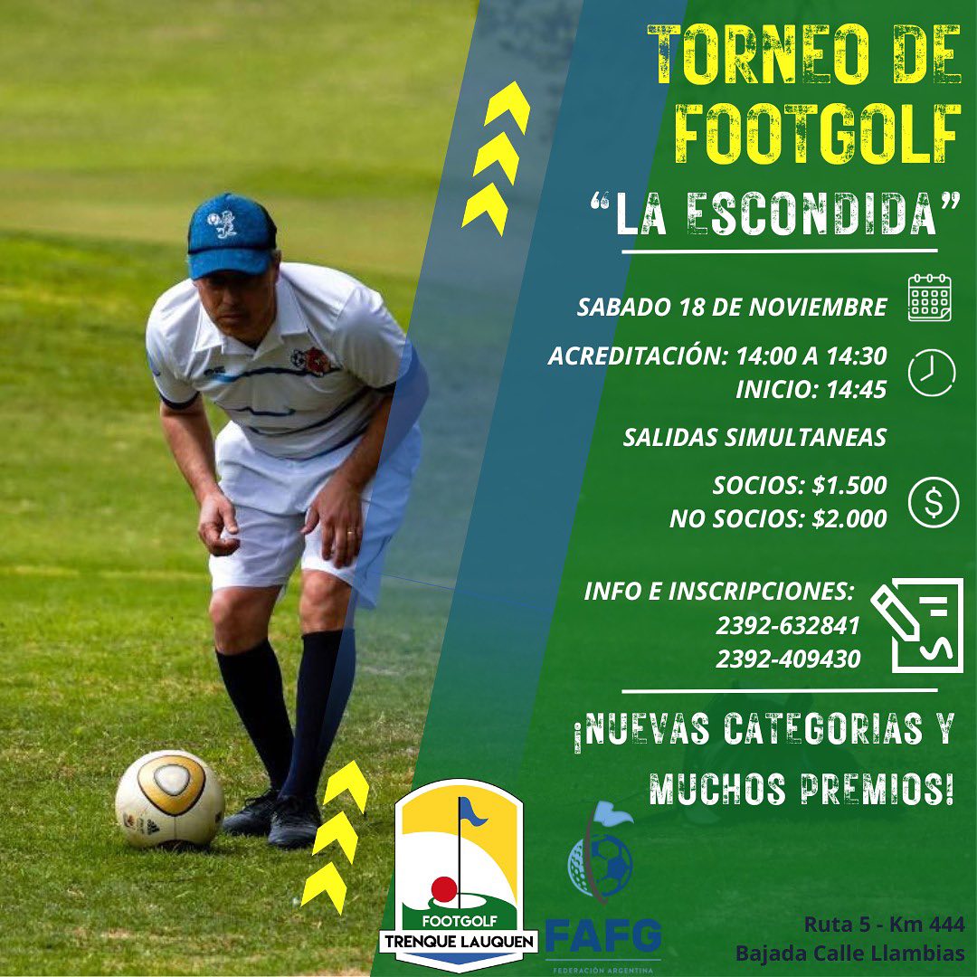 Queremos invitarlos este sábado 18 de Noviembre a participar en un nuevo torneo en nuestra cancha exclusiva de Footgolf “La Escondida”.