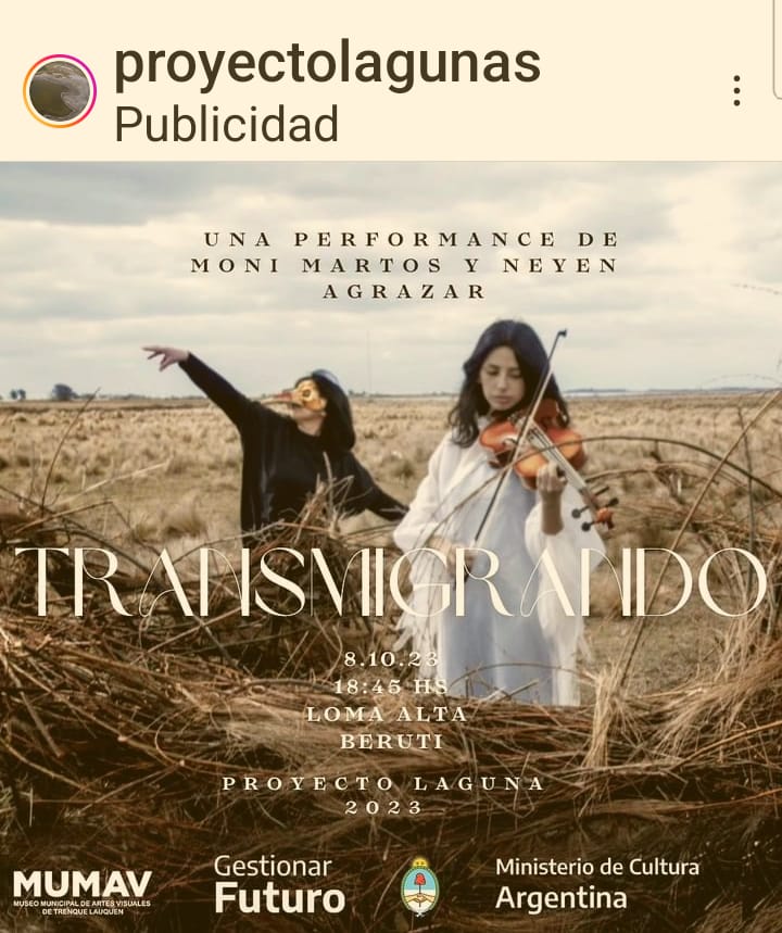 . Performance artística “Transmigrando” del Proyecto Laguna, en Laguna Loma Alta. Desde las 18.45 hs.
