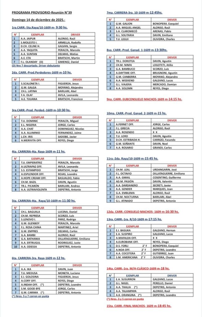 Se viene finales de la Copa Julio Rodríguez 2025 en el Hipódromo de Pehuajo el próximo fin de semana.