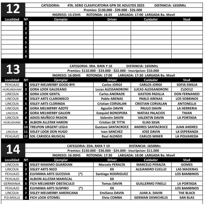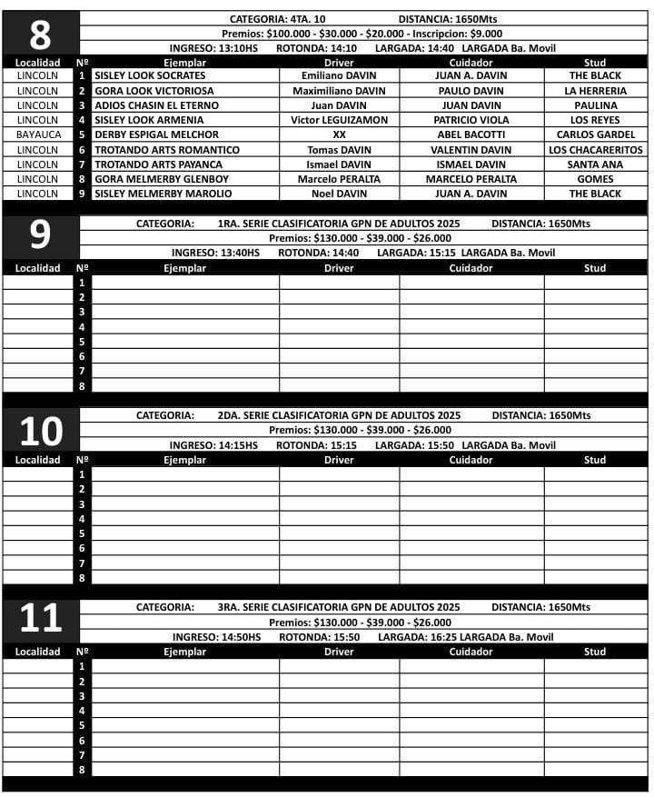 Sorteo de series Viernes 17 en el BUFFET del Hipódromo 21:00 hs