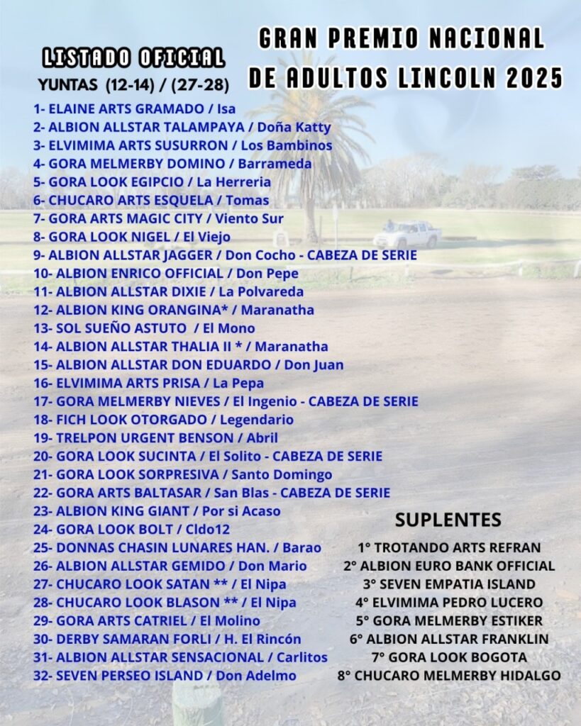 LOS INSCRIPTOS PARA EL NACIONAL DE ADULTOS LINCOLN 2025