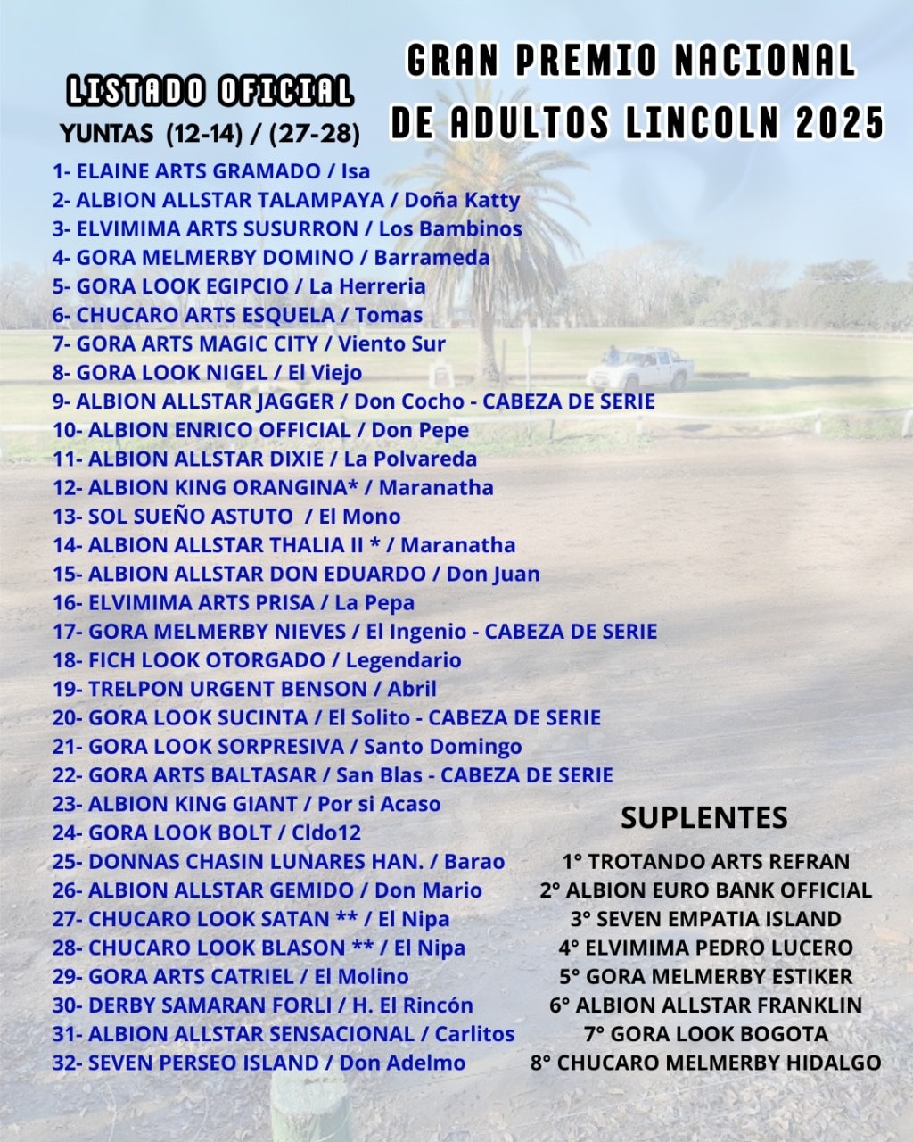 LOS INSCRIPTOS PARA EL NACIONAL DE ADULTOS LINCOLN 2025
