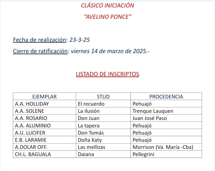 A nivel trenquelauquense que debutará será Albión A. Solene, del stud La Ilusión.