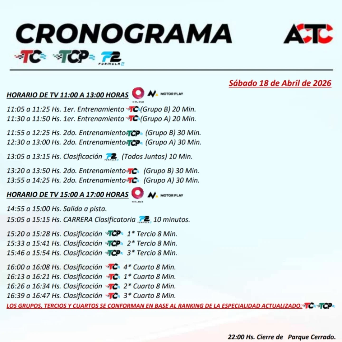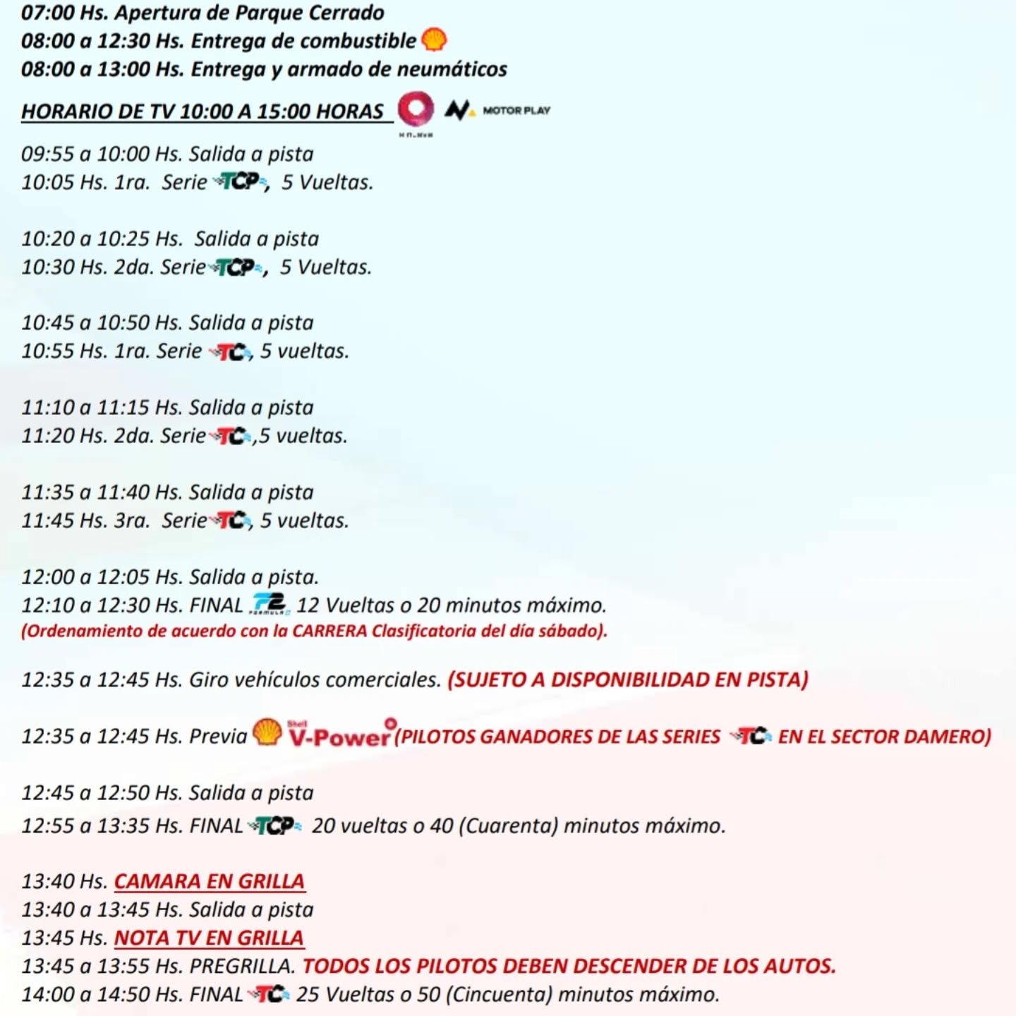 HORARIOS PARA EL FIN DE SEMANA POR LA PANTALLA DE CANAL 9 Y MOTORPLAY: