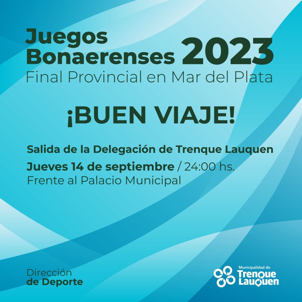 Un total de 370 personas, entre deportistas, vecinos/as clasificados en las disciplinas culturales y profesores conforman la delegación trenquelauquense que viajará mañana (jueves) a Mar del Plata para participar de la Final Provincial de los Juegos Bonaerenses 2023, que se disputará en la ciudad balnearia desde este viernes hasta el próximo miércoles (20).